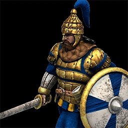 | “ | Unité Goth unique créée à l'âge des châteaux. Infanterie avec une importante protection contre les tirs d'archers. | ” |