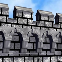 - Un segment de mur fortifié a deux apparences. L'apparence par défaut d'un segment de mur change en un segment de mur de section médiane si cette pièce est jointe par un autre segment de mur fortifié ou une porte sur les côtés opposés.