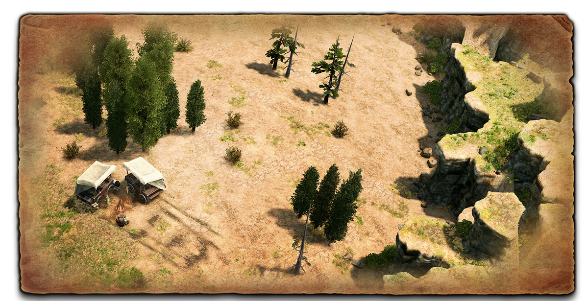 | โ | The cold desert beyond the Mediterranean is carved by cliffs and gorges that protect Gold Mines. | โ |