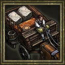 | Delivers 2 Blockhouse Wagons; villager gather work rate for hunted animals +20% |