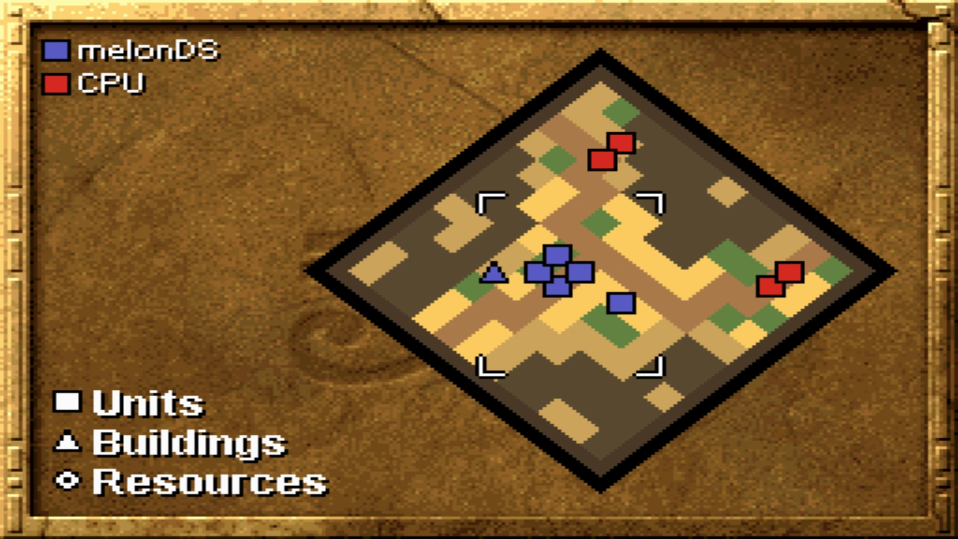 - CPU (Set): starts in the north and the east of the map with 3 Camelry and 1 Slinger.