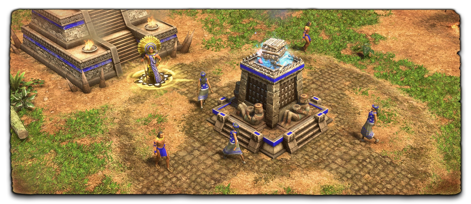 It grants a choice of "ceremonies" which provide special bonuses when villagers are tasked to the Community Plaza, which can hold up to 25 units; the more units tasked to the Community Plaza, the more powerful the ceremony becomes. The percentage-based ceremonies use the final amount as base, instead of the unimproved amount, which means that the ceremonies are much more powerful than they would otherwise be in later Ages.