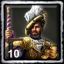 | Ships 8 Harquebusiers; costs 1,000 coin | 10 | ||