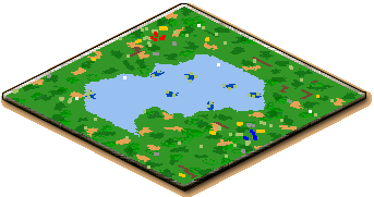 Elevations and hills of various sizes can be found around the lake, as well as some cliffs; however, most of the map is flat. Wolves are present in normal numbers all around the lake, but not on the lake, sometimes appearing in pairs, which makes them relatively easy to find. The number of Relics is standard and varies with the map size. They appear scattered all around the map.