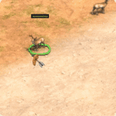Alpha animals (King before the Definitive Edition), present in some scenarios or via the GRANTLINKSPENCE cheat code, behave a little differently to their common counterparts. All can detect units from longer ranges, except the Alpha Elephant, which, unlike the standard Elephant, will actively chase units that approach within four cells, like a predator. All are more durable, and all except the Alpha Gazelle deal more damage, so they should always be hunted by large groups. The Alpha Gazelle and Crocodile/Alligator move faster than their common counterparts. The Alpha Gazelle is also a far more valuable target than other animals, yielding a massive 400 food.