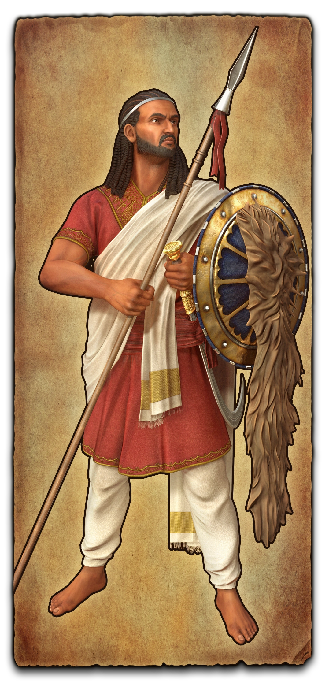 Kassa Hailu, better known by his regnal name Tewodros II (baptized Gebre Kidan, ca. 1818 — 1868), is an Ethiopian nobleman who would end the Zemene Mesafint through military conquests and re-established the Ethiopian Empire as its new emperor, marking the start to the modern Ethiopian history. His feats are featured in Age of Empires III: Definitive Edition - The African Royals as the The Era of the Princes Historical Battle.