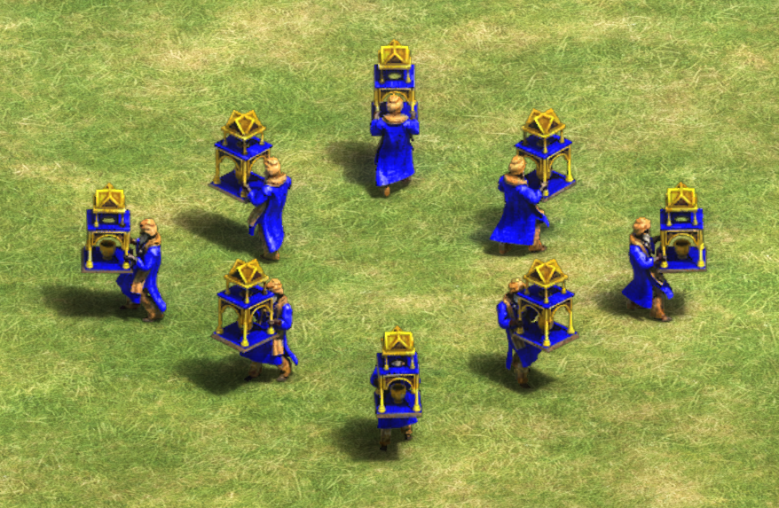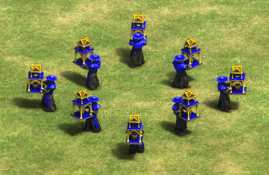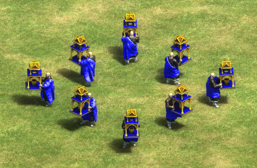 Lacking any means to attack, Monks are one of only two units able to convert others' units to the player's side, the other being the Spanish Missionary. They also heal allied units and the player's own units, except for ships and mechanical siege weapons. Initially weak, Monks can be powered up quite a bit by researching all technologies in the Monastery.