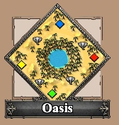 Oasis is a random map in Age of Empires: Definitive Edition, Age of Empires II: The Conquerors, Age of Mythology and Age of Empires IV: Anniversary Edition. The map focuses on an central water area surrounded by a thick palm forest, with niche resources, and a vast desert surrounding it.