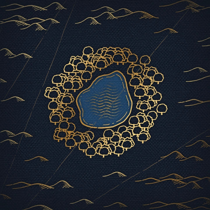 The Age of Empires II version consists of a map containing a single, large waterhole in the center of the map, with a gigantic palm tree forest surrounding it. In the current state of the game, the central lake lacks Fish; however, in older versions of the game Fish are present in the lake.