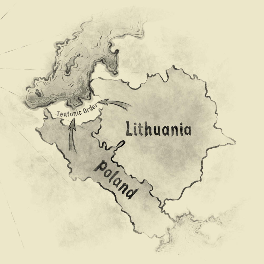 In 1384, Poland's first queen, Jadwiga (1373-1399), inherited the throne. Despite her young age, she proved herself an elite political strategist and local administrator, winning the hearts of the common people and masterminding a political union through marriage with the powerful Lithuanian pagan duke Jogaila–and, by extension, his cousin Vytautas. After Jadwiga's untimely death, Jogaila–baptized as Wladyslaw II Jagiello–would rule successfully for over three more decades, most famously breaking the power of the Teutonic Order at Grunwald in 1410. The realms that Jadwiga brought together would eventually comprise the Polish-Lithuanian Commonwealth, a powerful joint state that dominated much of Central and Eastern Europe over the following centuries.
