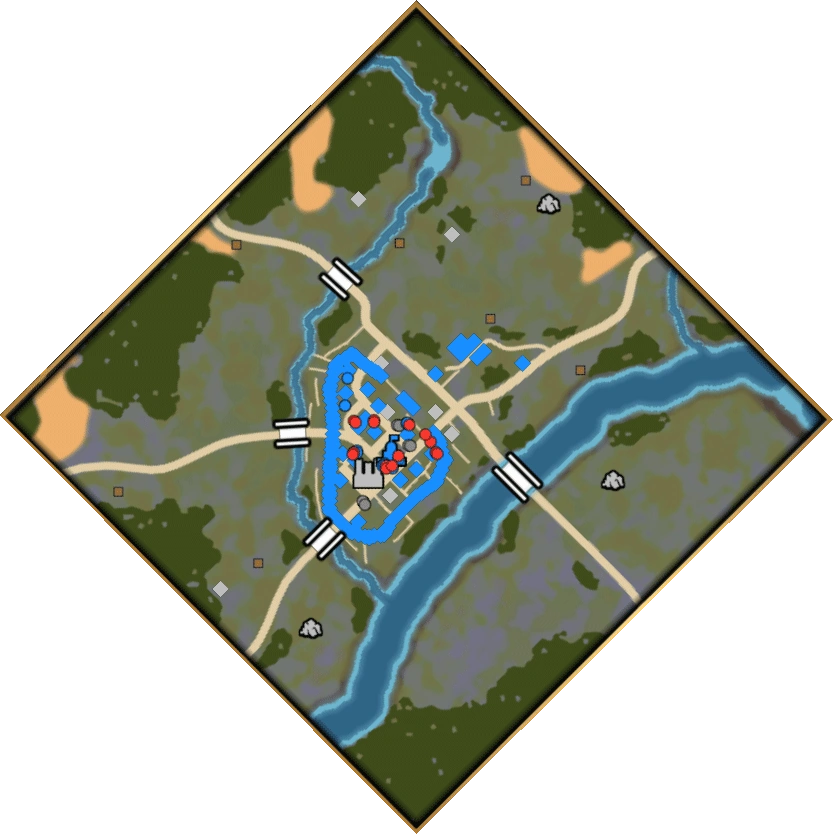 The latter can be accomplished by sending a Scout to the Hunting Cabins in the region (not including the one by the nearby Farms). These are marked in yellow on the minimap above. However, on Hard difficulty, only the three in the west are available. Along the way, they can grab the Treasure Chests dotted around the map, each of which contains either 100 gold or 500 food. Although Wolves in campaign scenarios are aggressive towards Scouts, individually they are not much of a threat, even to an unupgraded Scout. Furthermore, killing them provides gold and a higher food gather rate for the Rus via the Bounty mechanic. Either way, the player should continue producing Villagers to build up their economy.