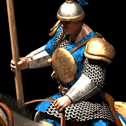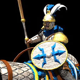 The Scout Cavalry reuses the spatha sword from the Huskarl and wears a Roman tunic and a gladius scabbard. Additionally, the Light Cavalry wears a Montefortino helmet, lorica hamataepomydes shoulder pads and a shield. The Raider reuses the helmet from the Huskarl and additionaly wears vambraces, greaves, and a small scaled horse barding. Overall, the units appear to be based on Roman Republican equites cavalry units.