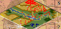 The enemy has some troops only a few seconds away from the player's starting military units to the west, and holds all the lands north of the river. Avoid running into them, as starting a fight will cause an overwhelming amount of enemy reinforcements to show up. On harder difficulties, most of the enemy's 50 troops will bear down on the position, which will break any early force the player can muster. Use one of the archers to scout the area from a safer distance and make sure to remember the locations of enemy units. The enemy won't attack before the player wanders out and encounters them, so it's possible to build up the base extensively before any fighting takes place.