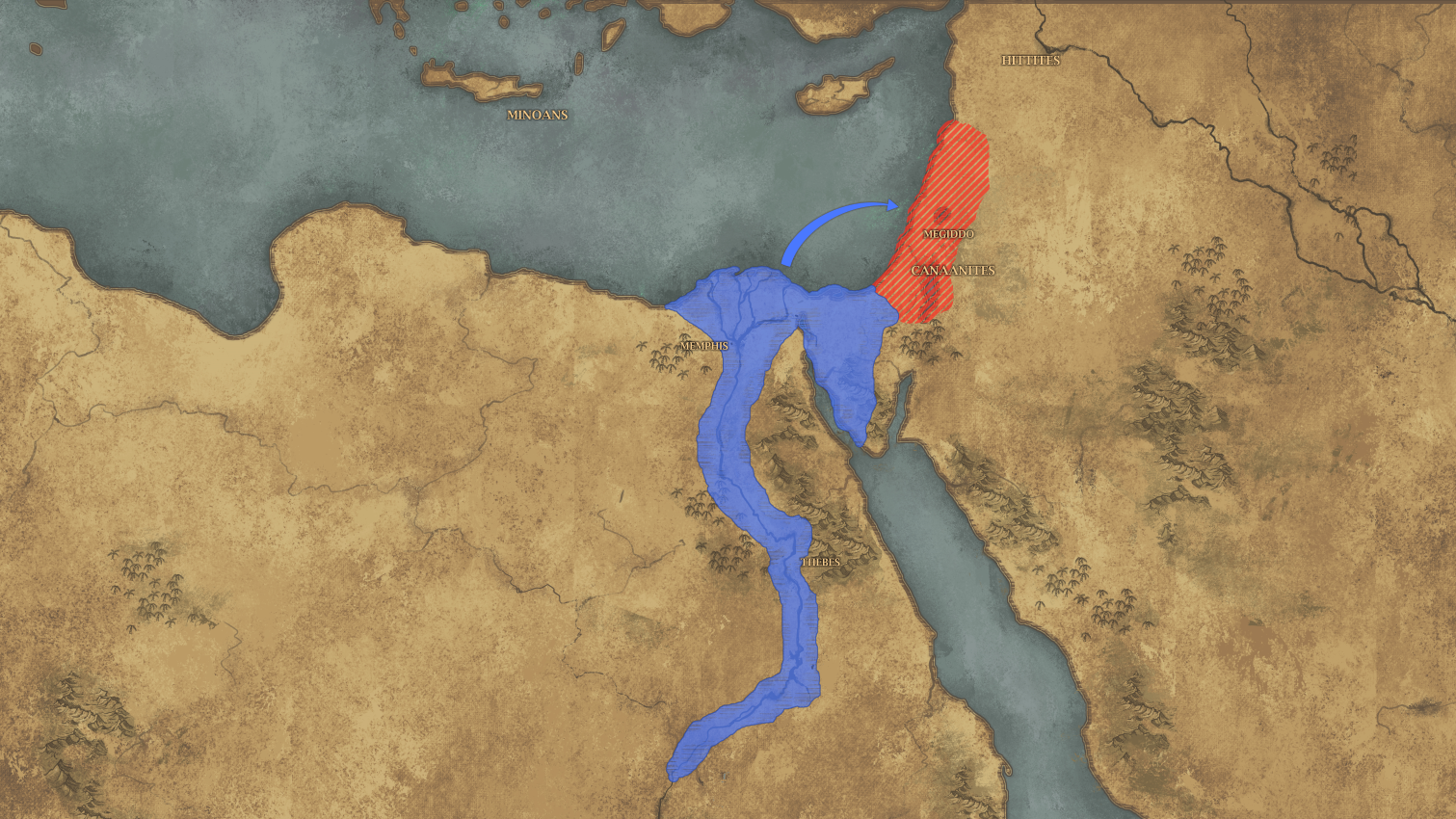 | “ | It is a glorious day for Pharaoh Thutmose III. All of Canaan has been added to the Empire and Egypt has reached its greatest territorial extent. The scribes will write of this day and your exploits will be read for eternity. The pharaoh will need your services again, however. These conquests have brought Egypt face to face with another empire which contests Egypt's claims to these lands. Prepare your battle chariot as you may soon find yourself at war with the Hittites. | ” |