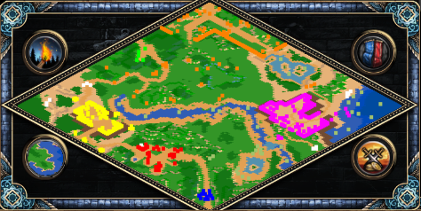 The Caravan is a scenario with no economic capability. The goal is to escort the Artifact to an allied Temple in the northwest. Extra units can be converted by Priests, and acquired from Gaia. It is also possible to acquire buildings to train up to six Priests or one Stone Thrower, but there is no way to gather more resources. Enemy forces are finite: while they do have bases, they are limited to their starting units.
