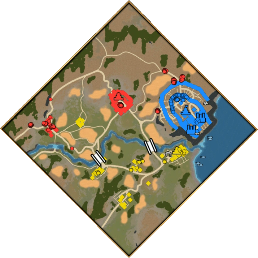 - Prince Louis (French): The French are besieging Dover Castle from the west and the north with a sizeable force of Veteran Spearmen, ArbalƩtriers, Men-at-Arms, and Horsemen. When attacking the castle, they will also bring siege engines, namely Battering Rams, Siege Towers, and Mangonels. They also have two bases located further out on the map, one in the center, to the northwest of Dover Castle, and one in the far west. Between their attacks, the French will send siege engines escorted by a mix of Spearmen, ArbalƩtriers and Men-at-Arms via two routes between the western and central camps, which the player will be tasked to destroy before they reach their destination. Otherwise, the siege engines will be used in the subsequent attacks on Dover.