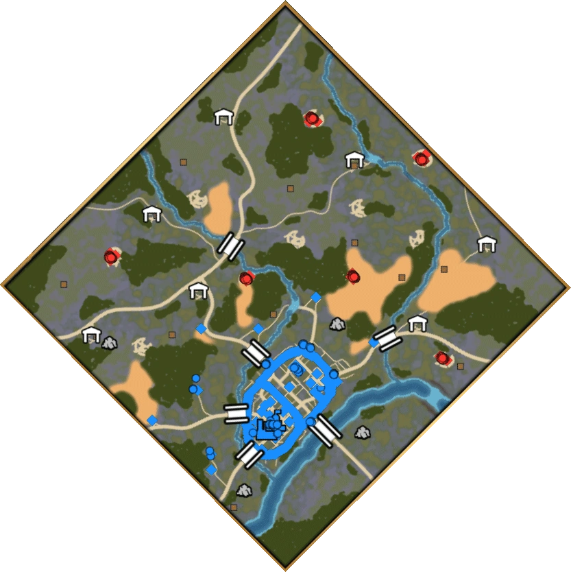 There is an additional objective to destroy the bandits' six camps, located across the map. However, on higher difficulties this does not reduce the number of bandit attacks, and the only benefit is a single Treasure Chest containing 100 gold in each camp, so this should not be made a priority. With Colunma and Troitskoy annexed, the player should send their Traders next to the settlements of Clin and Pereslaw in the west of the map, as these will require the player to extend their defenses the least. When these are annexed and fortified, the player can choose which of the remaining settlements they wish to focus on, bearing in mind that the bandits will continue to send attack parties from all directions. Once five settlements have been purchased, the scenario will complete.