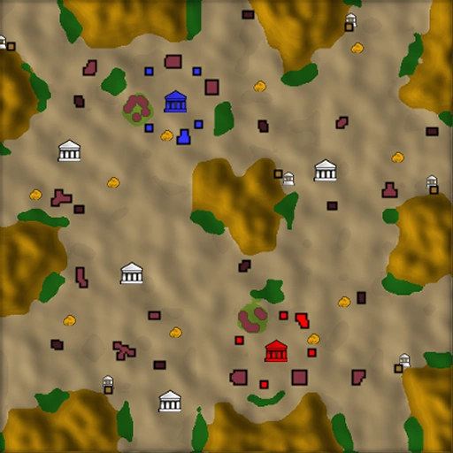 However, destroying a Bandit Migdol is extremely rewarding as they usually guard three large Gold Mines. These are incredibly valuable as they are the only natural source of gold apart from the starting Gold Mines. Players are advised to advance to the Heroic Age as quickly as possible to train siege units to destroy the Bandit Migdols. Similar to Megalopolis, allies start close to each other so playing on the defensive is viable. Major gods that fare best on this map include Hades, Gaia, and Isis. Meanwhile, Thor can cast Dwarven Mines to be less reliant on guarded gold mines while Kronos can simply use Deconstruction to remove a Bandit Migdol, leaving the gold for the taking. All three Chinese major gods are also viable choices as they can build Gardens to generate gold if needed, with Fu Xi and Nรผ Wa being additionally capable of accessing the Heroic Age minor god Dabo Gong, who in turn provides the Pixiu myth unit that can generate gold in combat.Environment[]