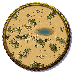 Egyptian symbols are frequent in this desert surrounded by cliffs. There are many statues of Pharaohs and Lions but also skeletons of the unfortunate thieves who fell victim to the Migdols. Large forests of palm trees provide shelter for various African animals, including Lions, Hyenas, Giraffes, Rhinoceroses, Hippopotami, and Gazelles. There are also Chickens near the starting Town Centers. A few ponds are found but they have no purpose other than to slow down armies. Goats are also scattered across the map which, once captured, can be brought safely to the player's base as the Bandit Midgols will not harm them.