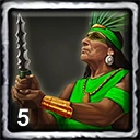 The Warrior Priest carries a knife as a weapon. Aztec knives were usually made from flint or obsidian (its name, tecpatl, means "flint" in Nahuatl), with a lanceolate figure and double-edged blade, with elongated ends. While they were traditionally used for human sacrifices, it was also a short-range weapon of the Jaguar Warriors, mainly as a sidearm, although it may have been of limited use on the battlefield.