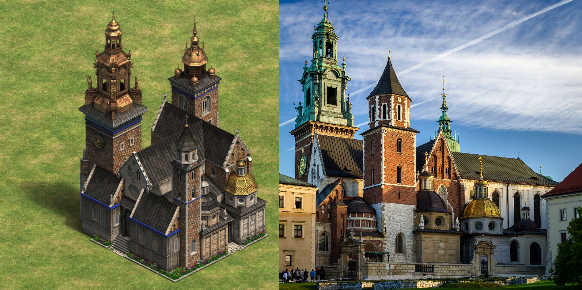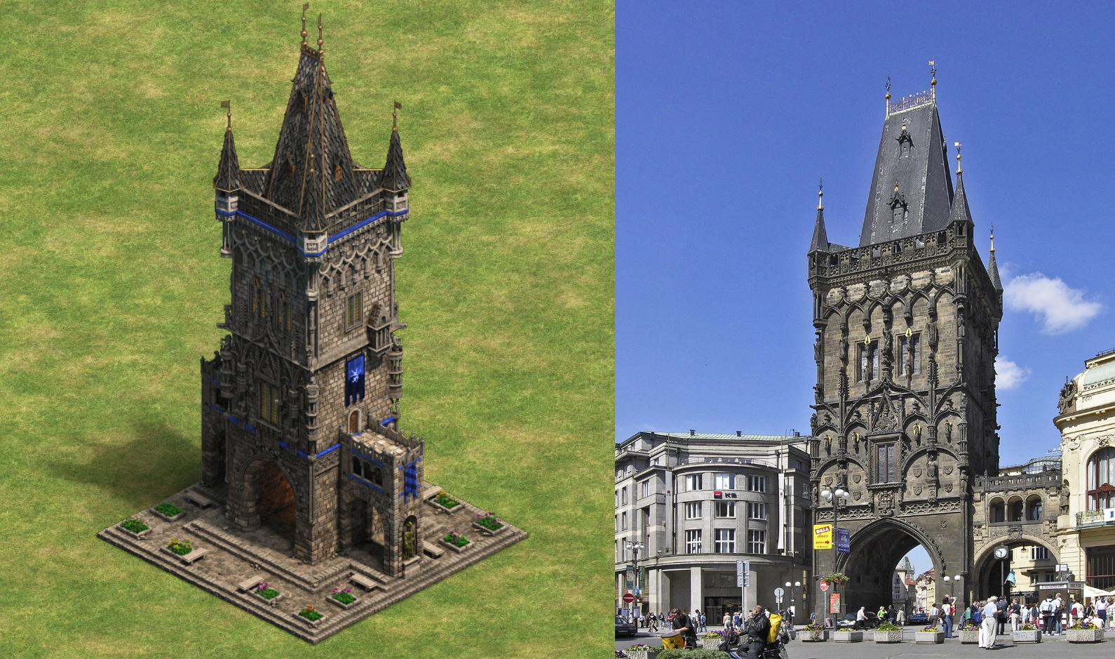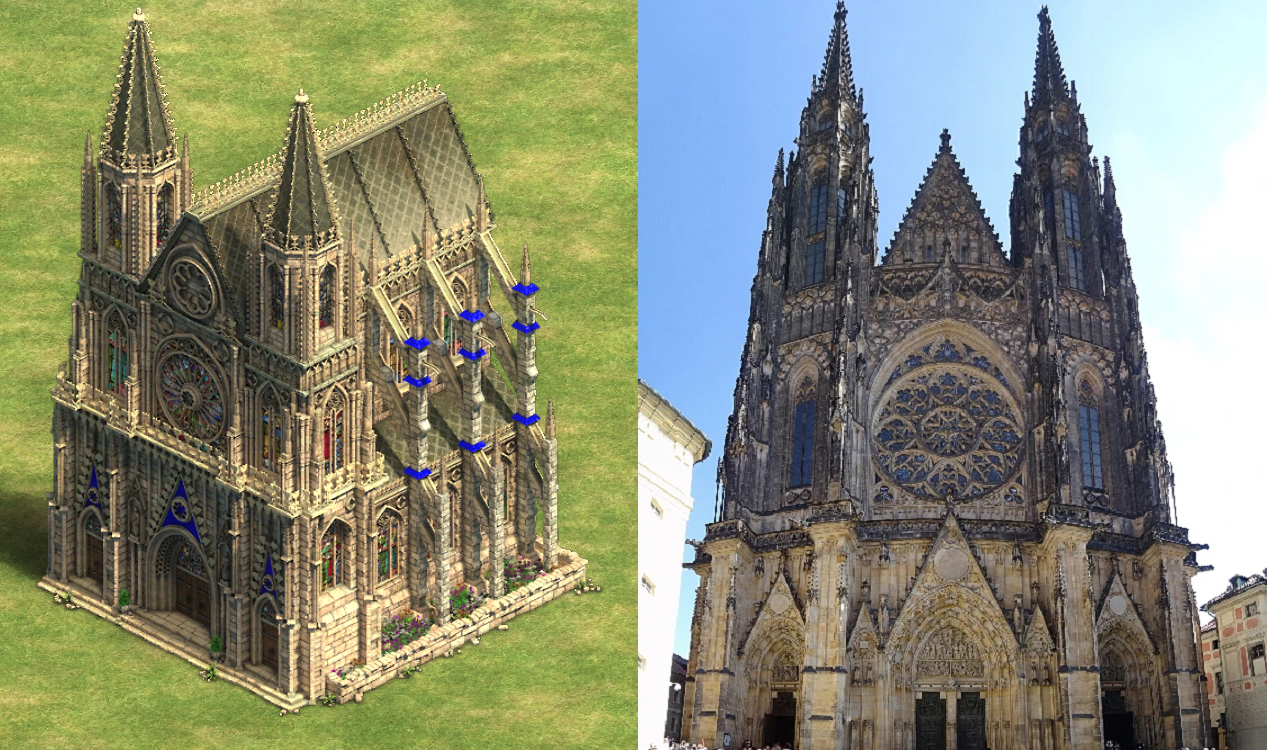 The in-game Cathedral and the real-world St. Vitus Cathedral