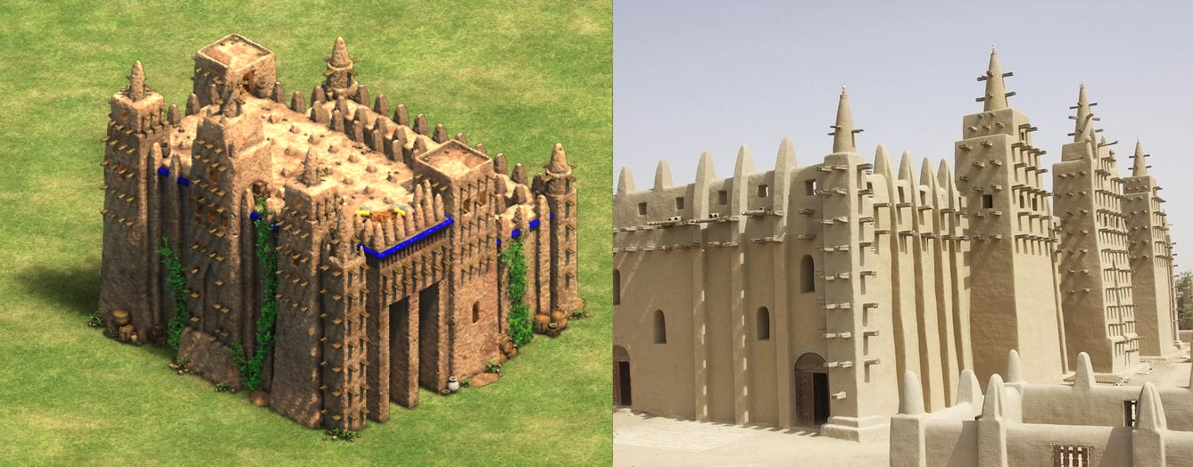 - The design of the Malian Wonder is anachronistic by necessity. It is based on the current appearance of the Great Mosque of Djenne, but the mosque was rebuilt in the early 20th century. The original mosque would likely have looked different, but no records exist that describe its appearance, so it remains unknown. The architect of the original mosque was from Egypt, so it is possible that it would have been similar to medieval Egyptian mosques in appearance.