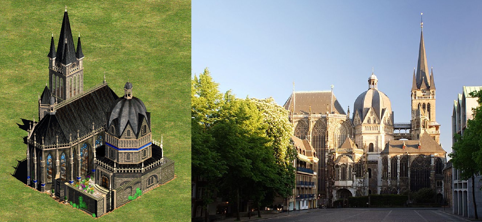 The Aachen Cathedral and its real life counterpart