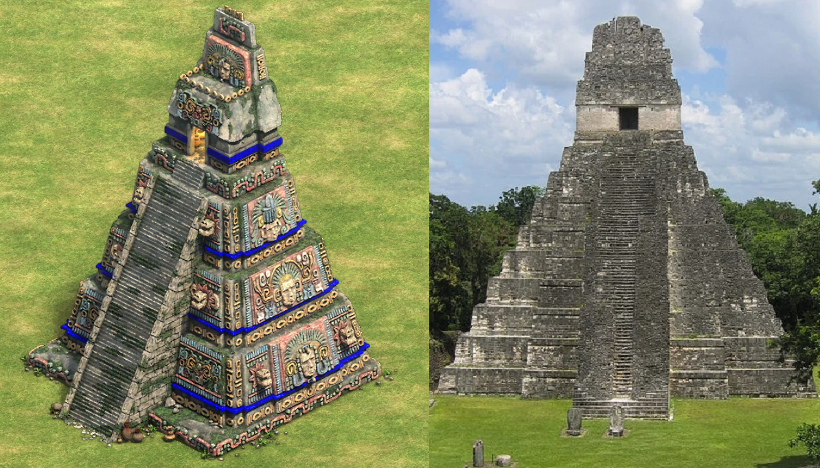 The Great Pyramid of Tenochtitlan and a render of its real life counterpart